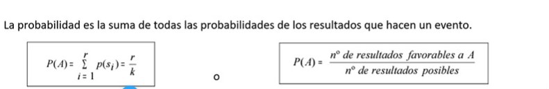 Espacio muestral: Es el conjunto de posibles resultados de un evento aleatorio