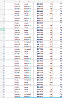 De este modo, si nos basamos en nuestra tabla de datos inicial para construir un diagrama de tallo y hojas con la variable experiencia laboral (columna E de nuestra tabla inicial) quedaría estructurada del siguiente modo: