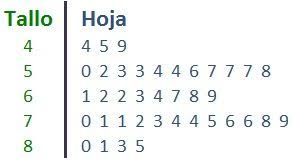 Siendo el tallo el primer o los primeros dígitos de una cifra, y las hojas unicamente el último dígito.